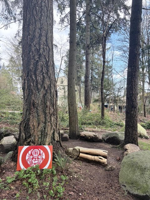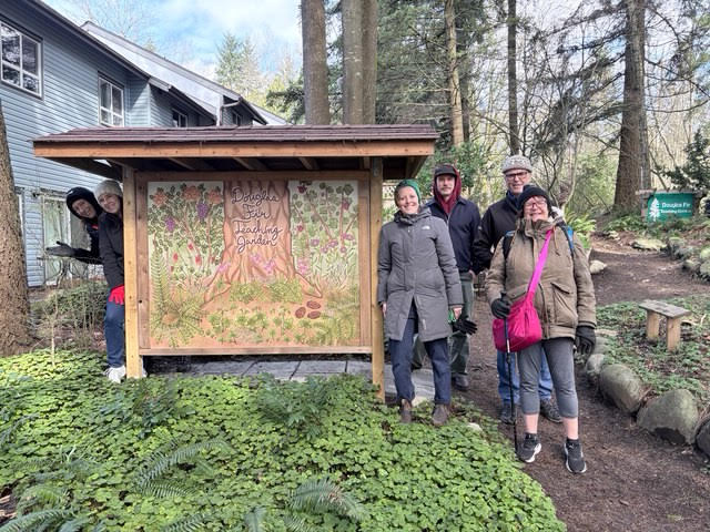 Douglas Fir Teaching Garden sign (pictured) featuring local flowers, ferns, and berries, designed by amazing local artist Valentina Pagetto
