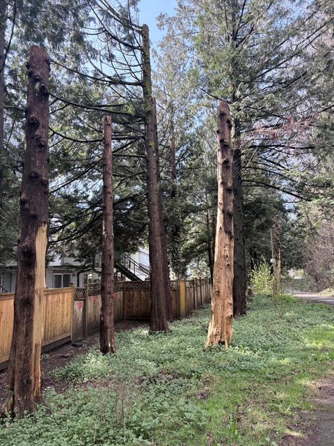 6. Lollypop: how fear led to a row of cedar trees having their lower branches branches cut (like a “Lollypop”), which led to the trees early demise.